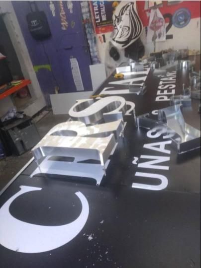 rótulos de aluminio, acrílico, letras en tercera dimensión y